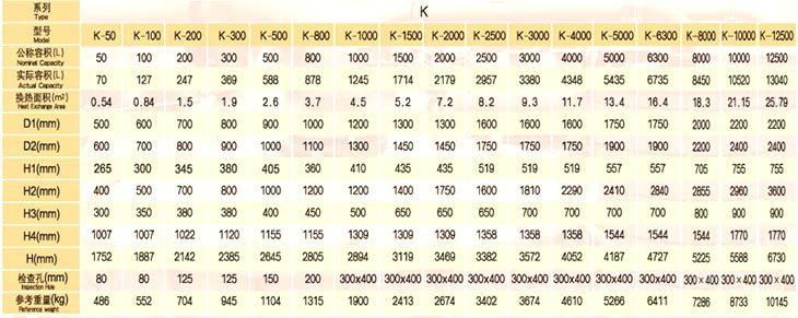 6.K係列反應罐主體尺寸符合HG/T2371-92、GB/T 25027—2010標準,並在此基礎上進行了改進。